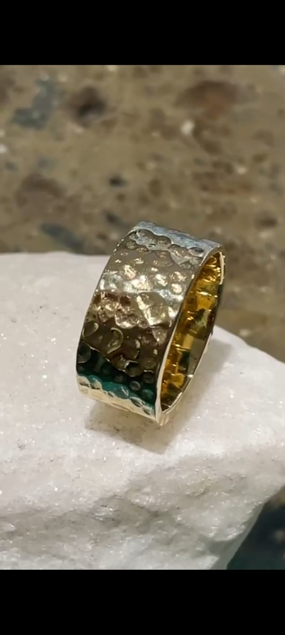 Anello a fascia in oro 18 kt lavorato a mano e partellato. Realizzabile anche in argento ad euro 250,00